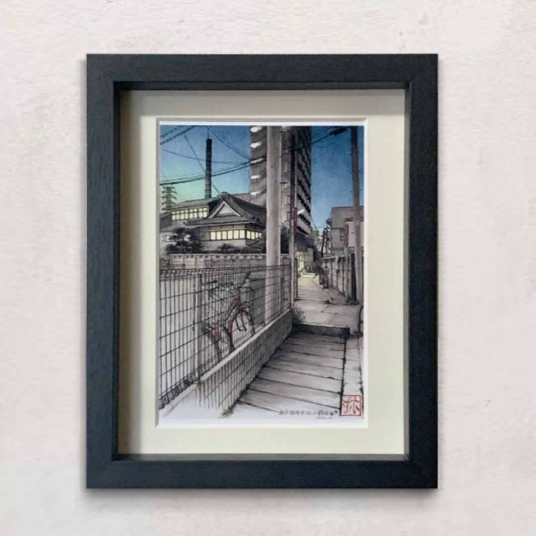 『しほのえ展』で販売した「根方堀暗渠沿いの銭湯」のA5サイズ複製画です。マットや額は付属していません。